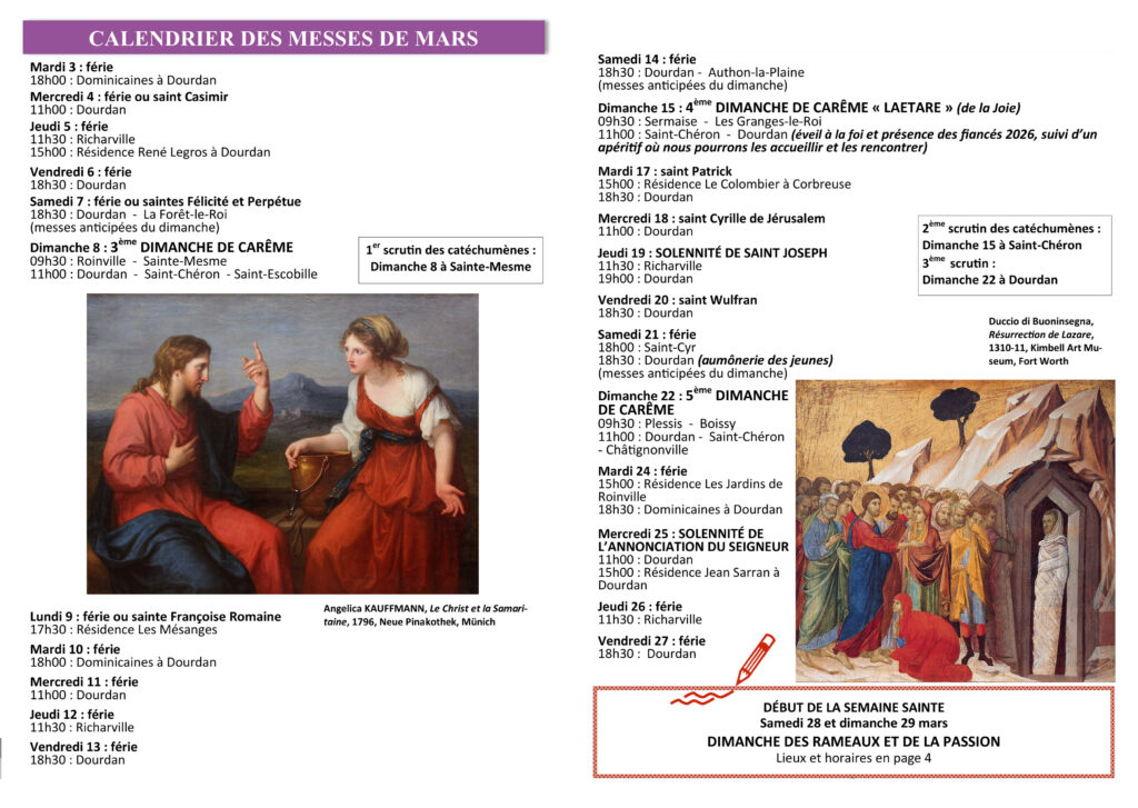 Vie du secteur Plus de masque, mais restons attentifs et confiants en Dieu, en gardant les gestes sanitaires. | Annonces dans le Bulletin Merci de Communiquer vos Annonces pour le mois à venir par courriel avant le 15 du mois en cours | Feuille paroissiale Toutes les infos des célébrations et de la vie du secteur.